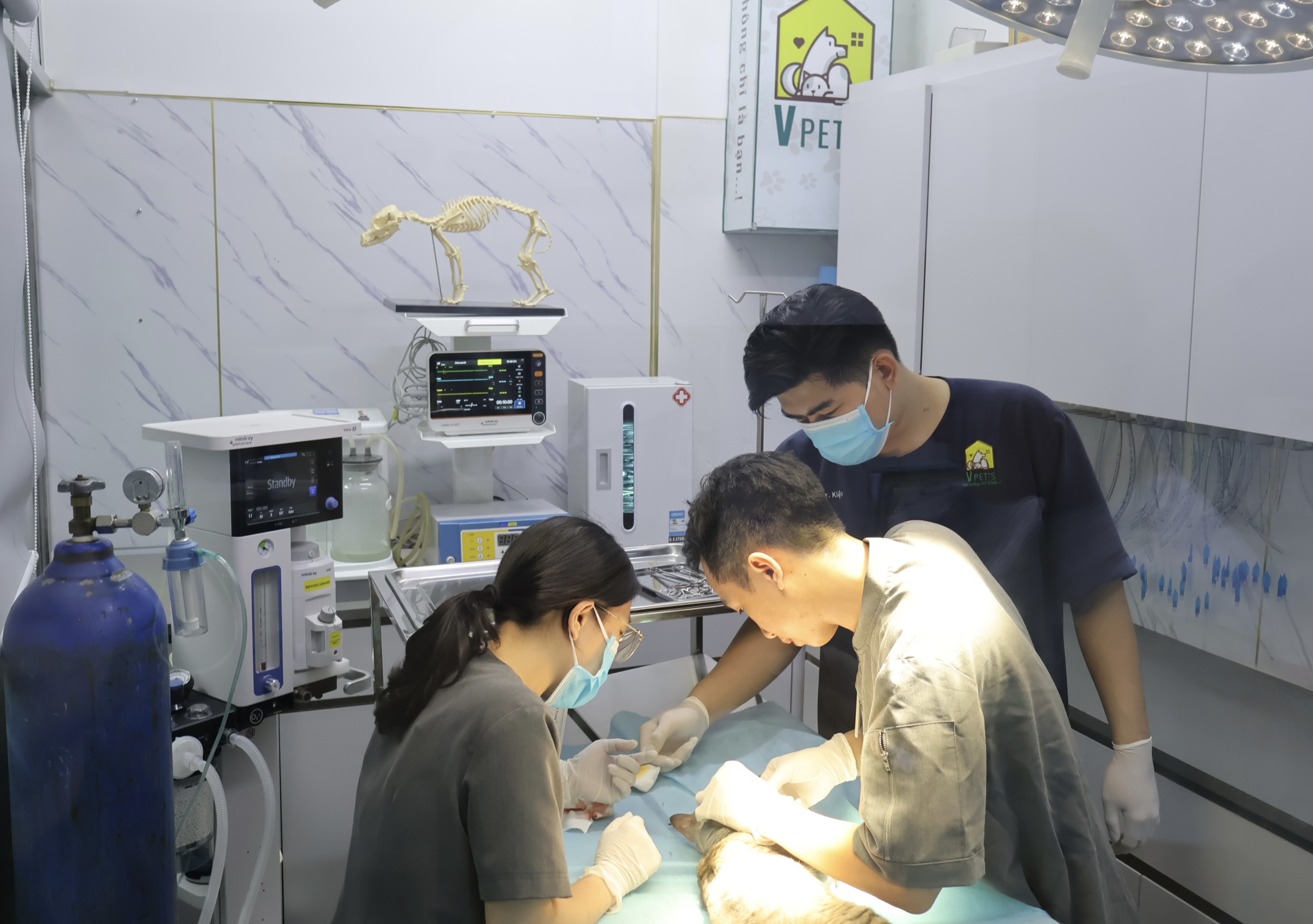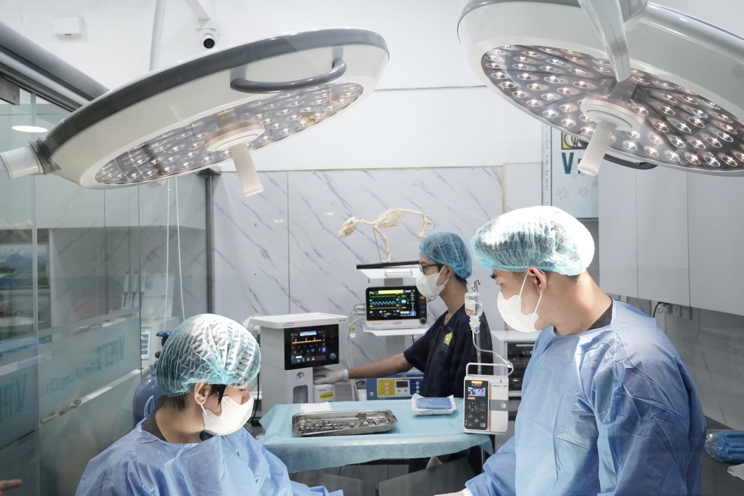 Tại Bệnh viện Thú y Vpet’s, chúng tôi hiểu rằng mỗi ca phẫu thuật đều là một thử thách lớn đối với cả thú cưng và chủ nuôi. Với đội ngũ bác sĩ ngoại khoa giàu kinh nghiệm cùng hệ thống phòng mổ tiệt trùng hiện đại, chúng tôi thực hiện từ các ca phẫu thuật mô mềm thông thường đến chỉnh hình phức tạp. Mọi quy trình từ tiền mê, gây mê đến theo dõi hậu phẫu đều được kiểm soát nghiêm ngặt bằng thiết bị monitor hiện đại, đảm bảo giảm thiểu tối đa rủi ro và giúp người bạn nhỏ hồi phục nhanh chóng nhất.