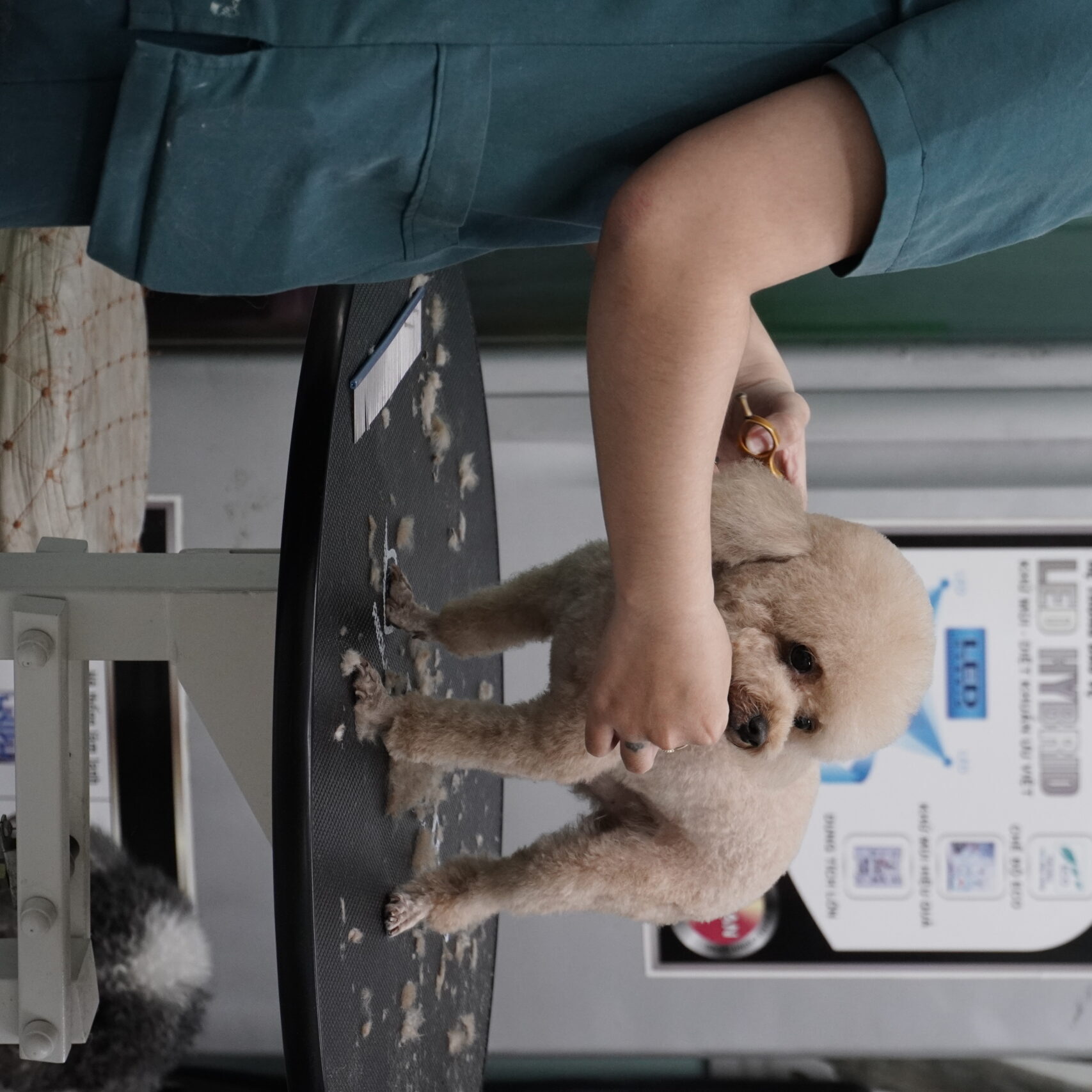 Đội ngũ chuyên viên cắt tỉa (Groomers) tại VPet’s không chỉ giàu kinh nghiệm mà còn sở hữu gu thẩm mỹ tinh tế, sẵn sàng tư vấn và tạo hình những kiểu lông thời thượng, phù hợp với đặc điểm ngoại hình của từng giống loài. Quy trình của chúng tôi được thực hiện một cách bài bản: từ việc sử dụng các dòng sữa tắm thú y cao cấp để bảo vệ độ pH của da, sấy khô và chải lông kỹ lưỡng để loại bỏ lông chết, cho đến vệ sinh các vùng nhạy cảm như tai, kẽ móng và tuyến hôi. Mỗi bước đều được thực hiện nhẹ nhàng, ưu tiên sự thoải mái và an toàn tuyệt đối cho bé.